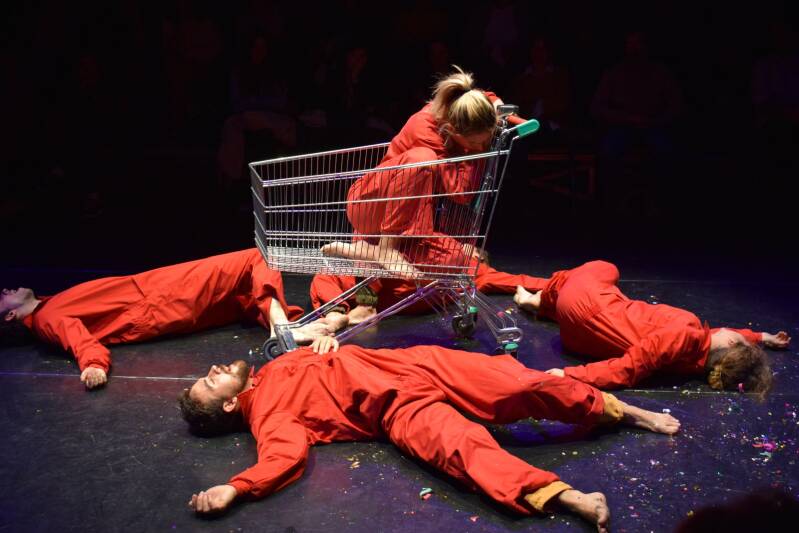 Una obra de teatro físico que investiga sobre el consumismo y la relación de las personas en los espacios públicos de consumo.